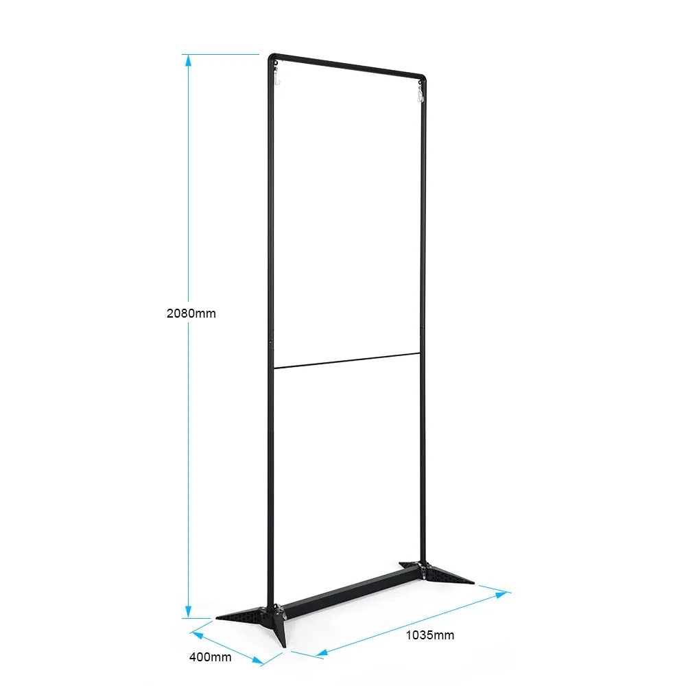 The display is made from aluminium with a black finish, providing a lightweight and durable display with a neutral look. Assembling this unit is quick and easy, with no tools needed. The poles that make up the frame snap together, and the base has plastic feet attached that angle outwards to ensure stability. Order from Slimline Warehouse today for quick shipping to anywhere in Australia!