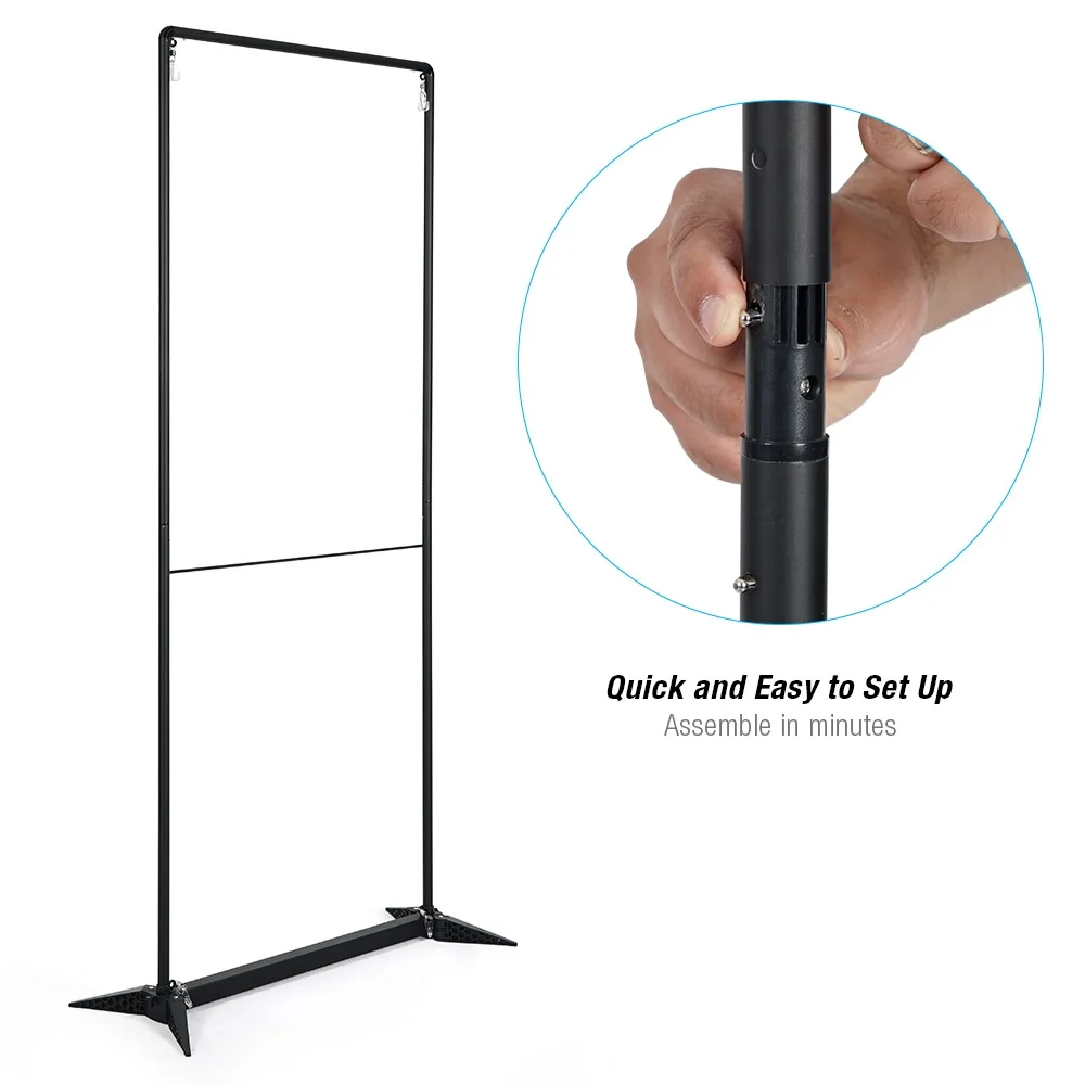 • Plastic grommets on each banner corner attach to frame with spring clips for tension