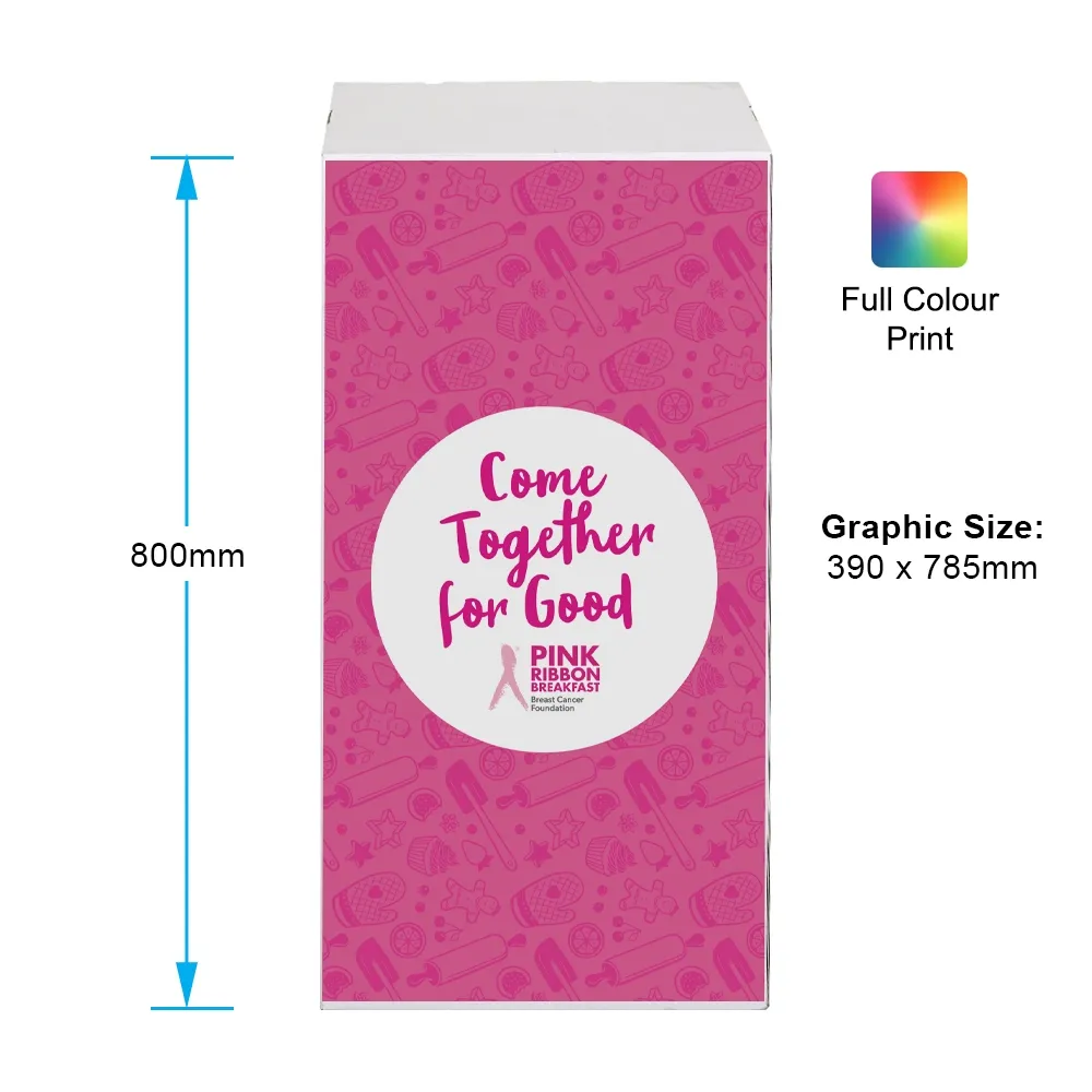 The cardboard display stand, like many portable pedestal plinths, include a printed poster to advertise what is being showcased atop the unit or provide information. This display comes with a 390 x 785mm adhesive vinyl graphic that is affixed to one side of the unit. Your custom graphics are digitally printed in full colour, resulting in a true depiction of your designs with vivid imagery and rich colours that will draw attention in any location! If you need assistance, our in-house team is available to help. There are three tiers for you to choose from to find the best fit for your needs.