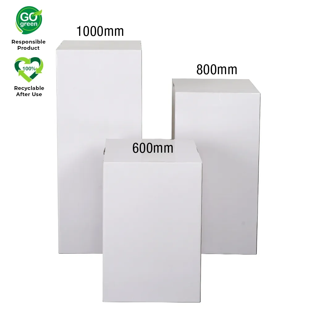 - Cardboard display plinths include 3 sizes – 60cm, 80cm, & 100cm