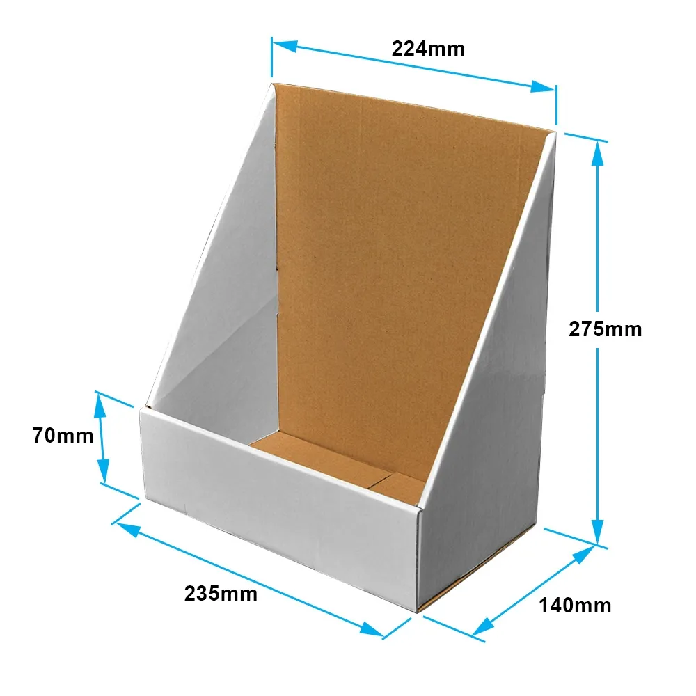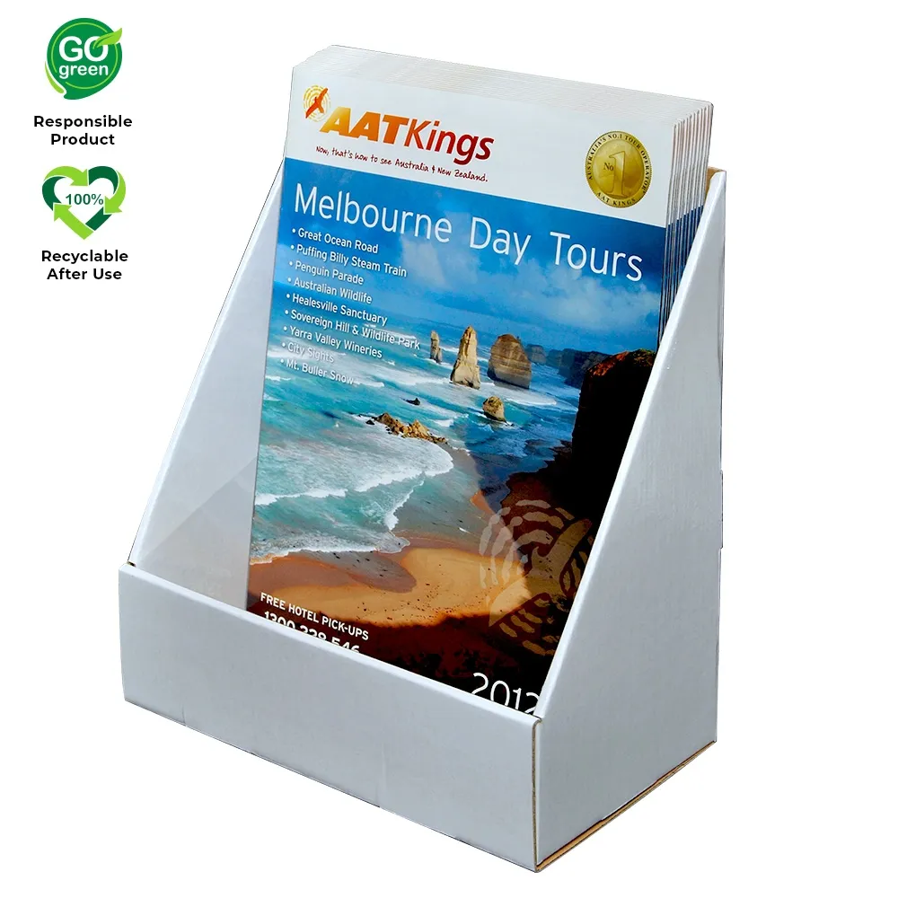 This counter display, like a cardboard brochure holder and magazine holders, is designed to hold A4 width (210mm) magazines and brochures in portrait format. Up to 350 x 300gsm sheets can be displayed within the unit! This counter display is low-cost, making it easy for any business to purchase at the economical price.