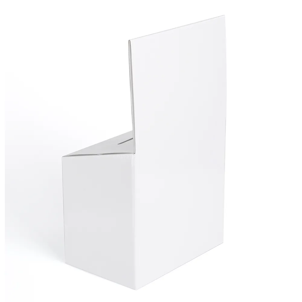 The fund raising displays, custom donation boxes are designed to take up little space on a counter or tabletop whilst still being easily seen to get attention. Standing at 485mm tall, the container has only a 192 x 285mm footprint, with the 210 x 285mm header area standing out with your custom sticker graphic! The angled top of the display has a 160 x 10mm slot for placing different items within easily. The top folds open to remove the donations, votes, comment cards, and suggestions easily.