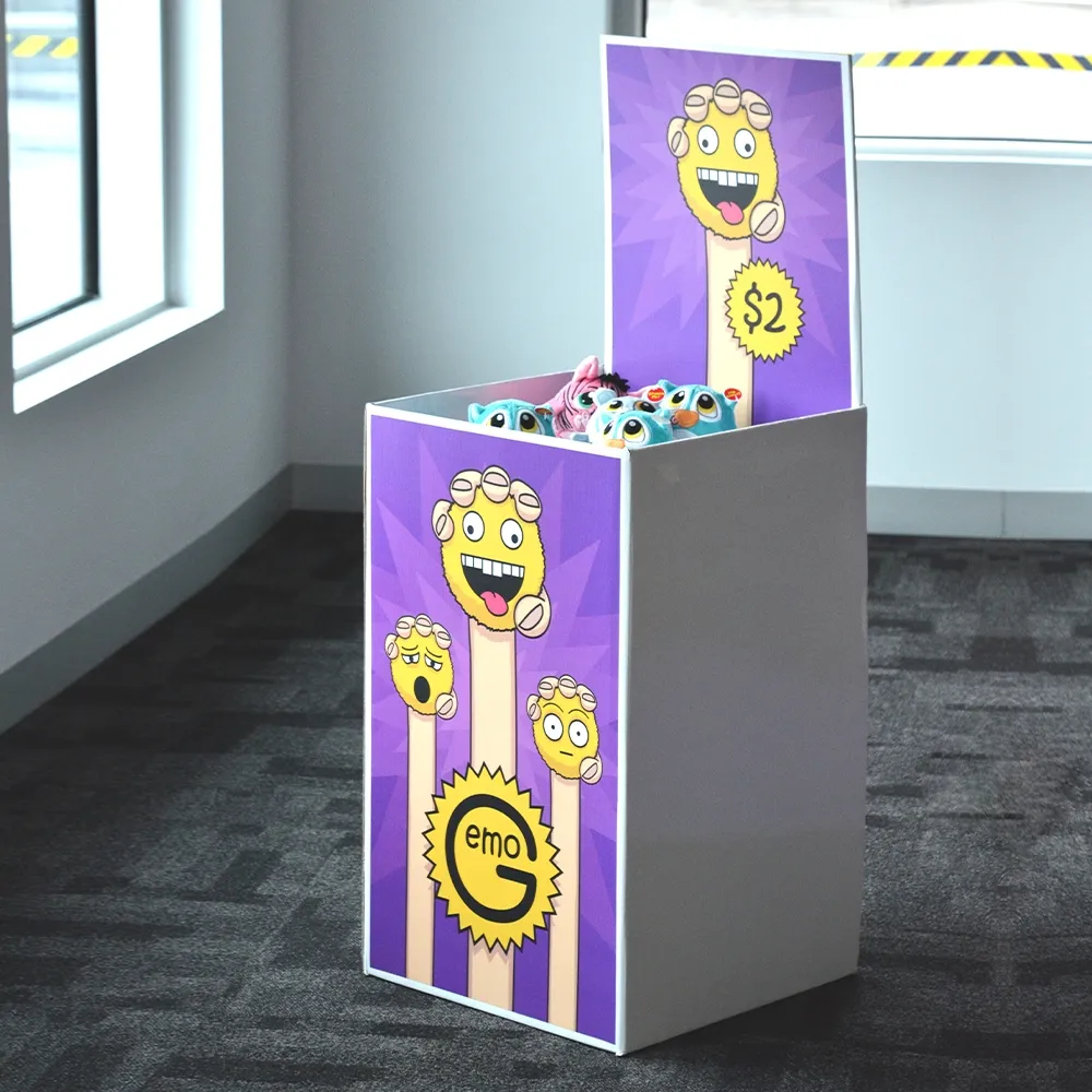 Cardboard dump bins for retail have your custom graphics digitally printed to get the attention of passersby and get them interested! This floor standing dumpbin has (2) areas that can have different designs to help best serve your needs. The upper header area has a 420 x 520mm graphic, with the front offering a large 430 x 730mm area for you to have your designs printed. Each area uses a sticker adhered to the cardboard for a seamless look.