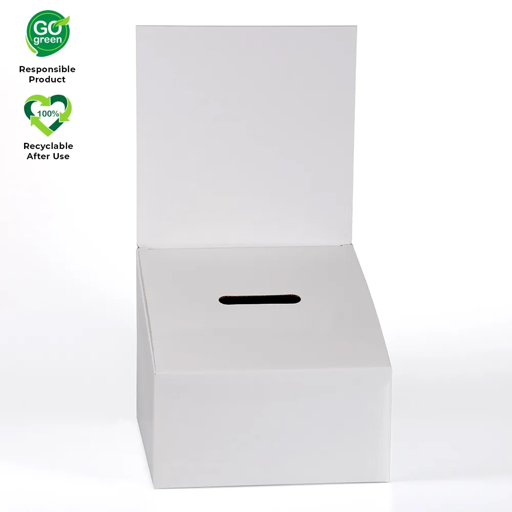 • White ballot box made from corrugated cardboard with white gloss laminate