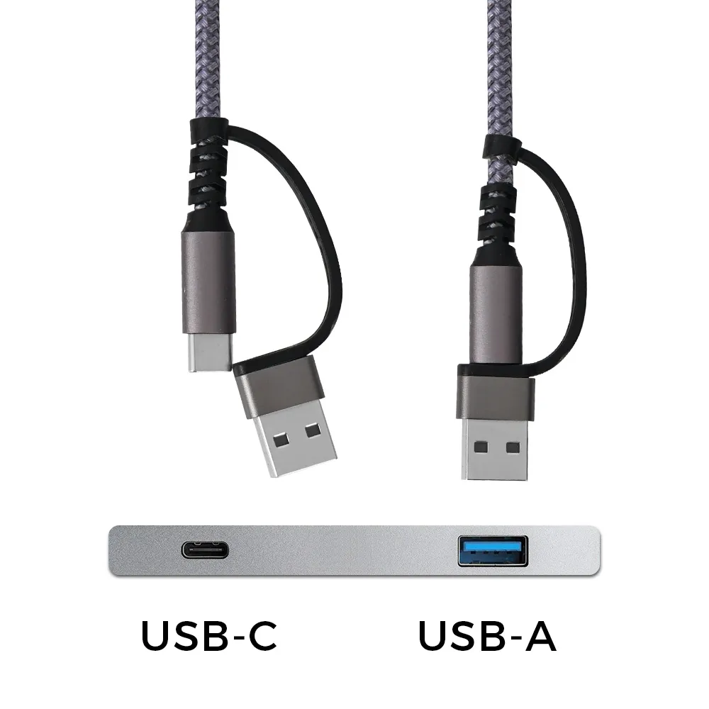 • 2-in-1 Port has adapter for both USB-C and USB-A connetions