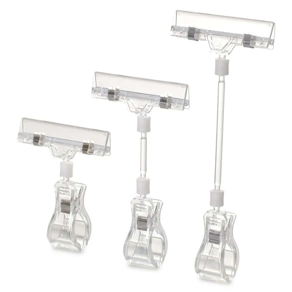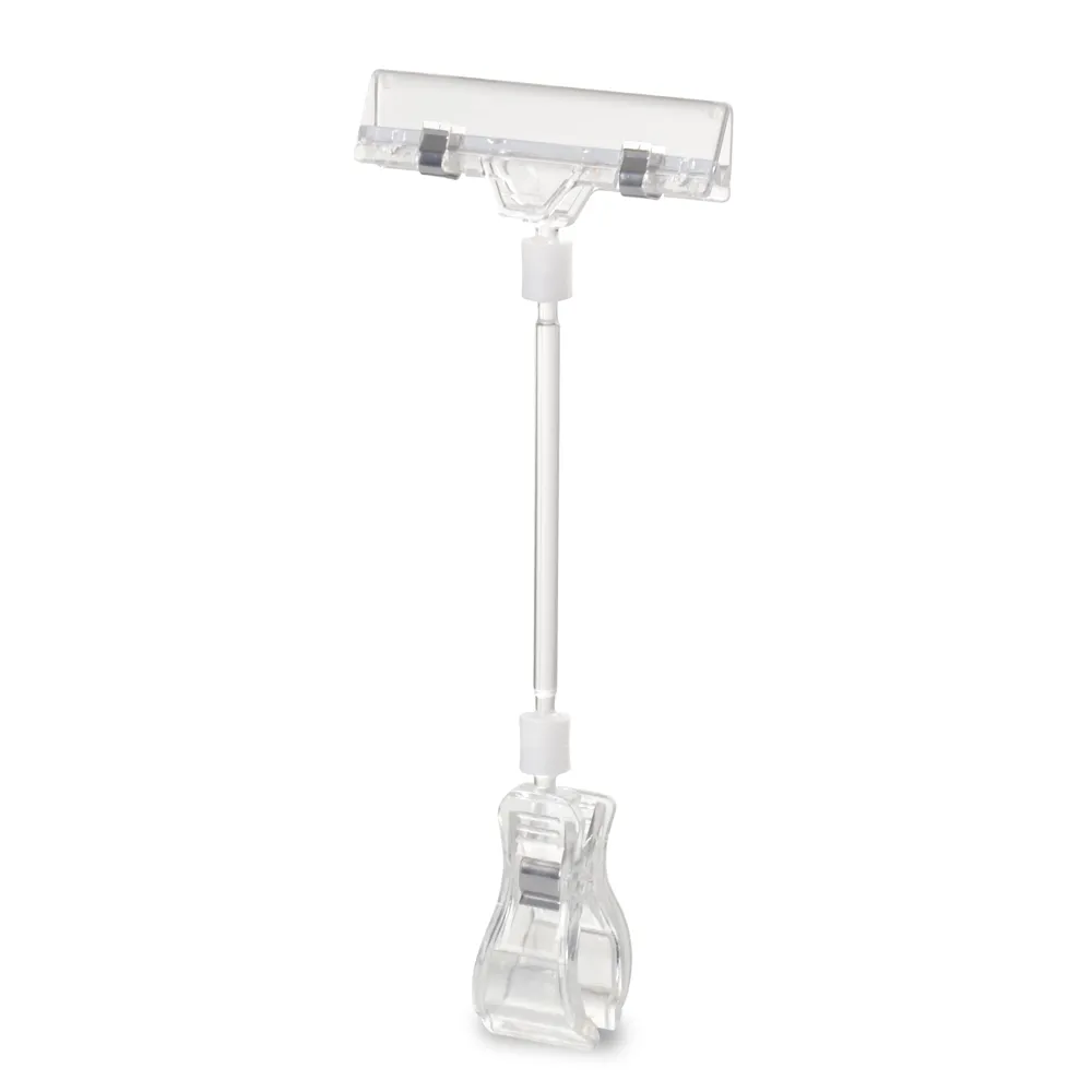 This sign holder clamp is 205mm tall, helping your signs to stand out to customers so that they will read them. The POS display clip uses two universal joints to allow the holder to be positioned best for viewing depending on how you clip the gripper to other displays. The middle rod makes it really easy to angle the sign into the best area for customers to read pricing information, product specifications, sale advertisements, and more.