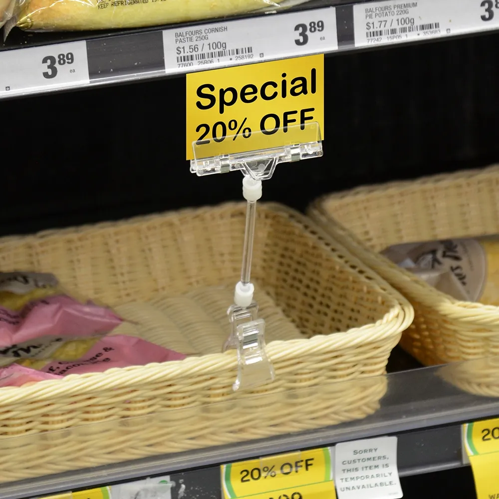 - 205mm tall display uses rotating clips to allow signs to be placed where you need
