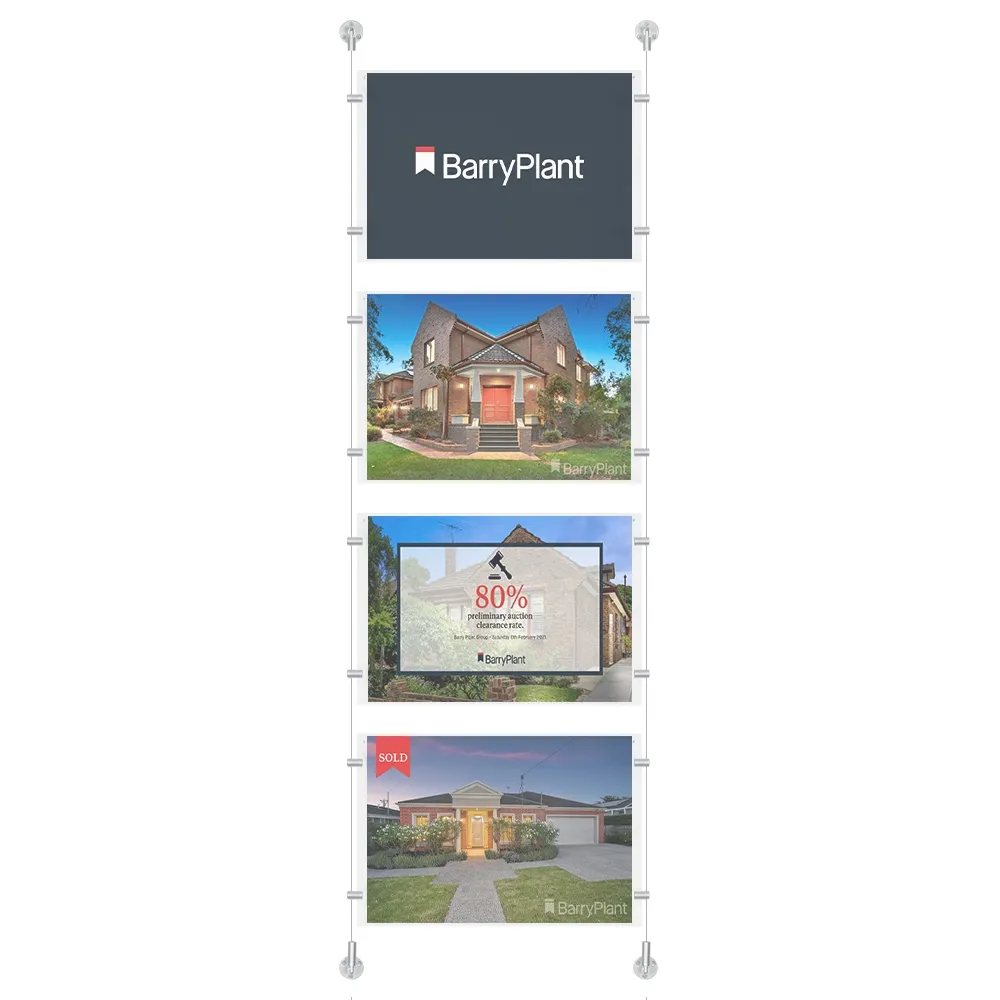 - Suspended acrylic display holds (4) graphics in A3 (297 x 420mm) size in landscape