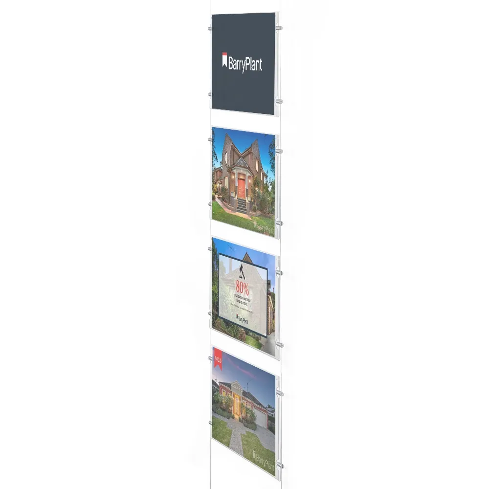The suspended acrylic display is an attractive display this uses A3 (297 x 420mm) graphics in landscape format to display your custom graphics in each of the (4) holders! Each holder is made from clear acrylic in order to give passersby a full, unhindered view of your posters do that they are ready to read.
