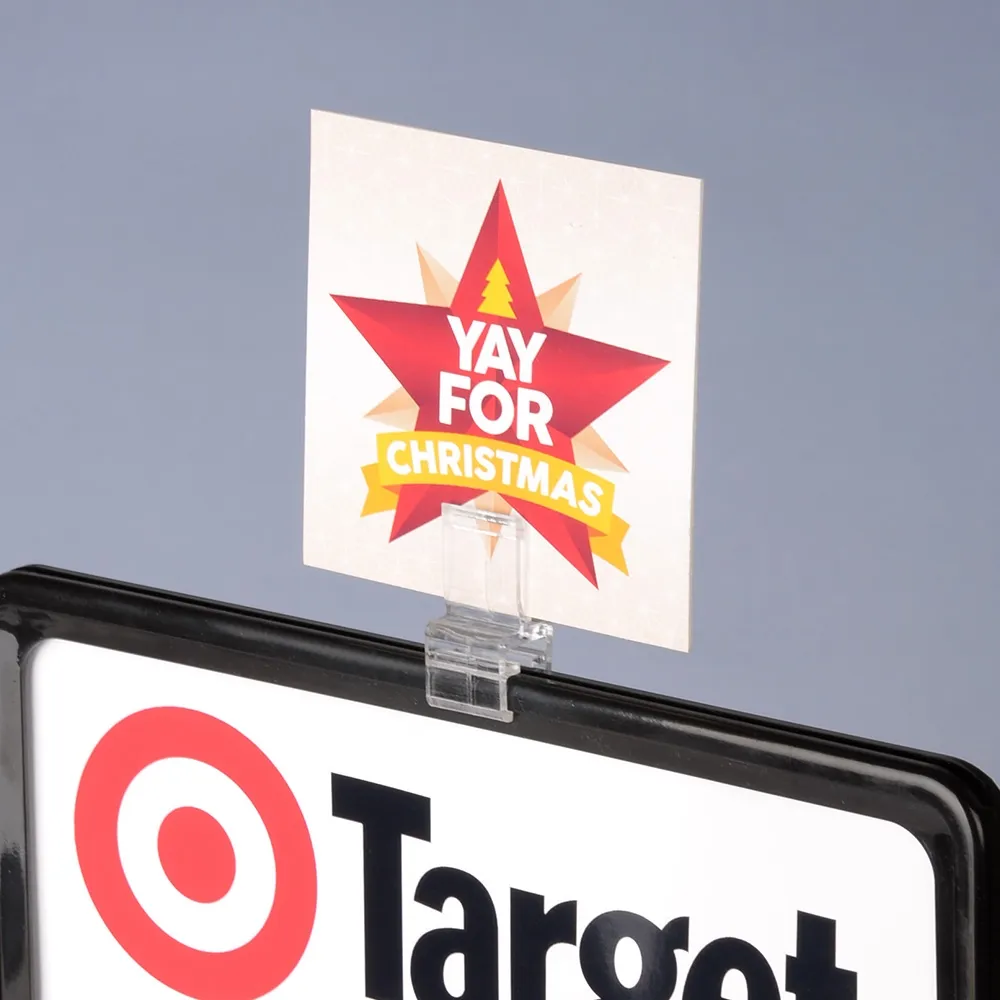 The price tag holder includes 50 clips with each unit purchase. These retail POS displays have two sides to grip different types of holders. One side is designed to hold POS signage frames up to 10mm thick. The other side can grip thinner materials that are 1mm thick. This versatility means you can attach sign frames to display boxes, or put additional pricing or sale information on top of existing POS sign frames!