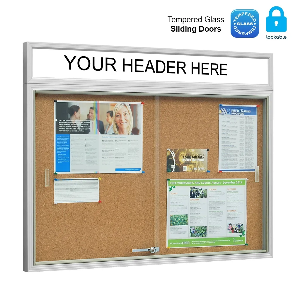 This framed corkboard also features a large header area that holds custom vinyl graphics that are up to 1220 x 915mm tall. You can purchase vinyl lettering through you local Sign Shop. By using custom graphics in this area you can gain the attention of passersby from across a room with ease! The notice board is a great way to provide information such as upcoming sales, new classes, acting auditions, menus, and timetables for easy viewing.
