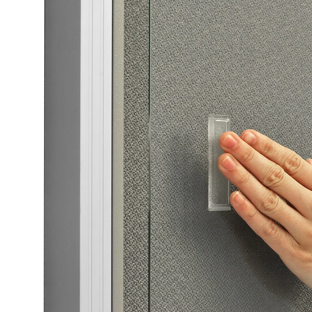 - Self-healing cork board behind grey fabric offers years of consistent use