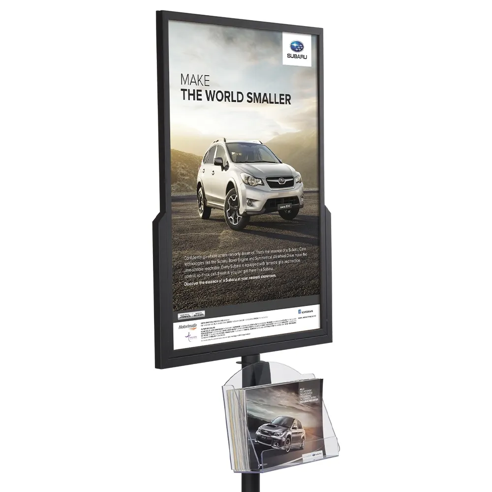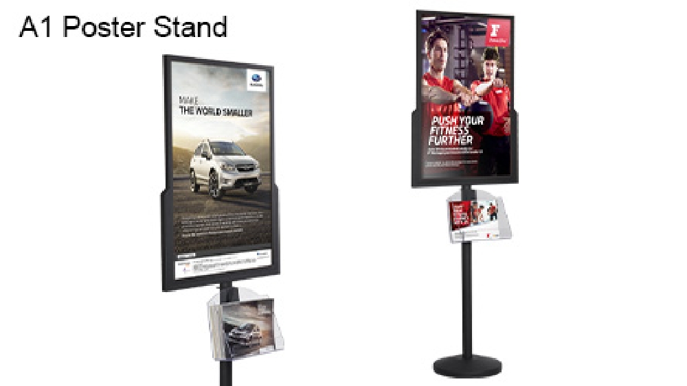 This floor standing poster holder is made from powder coated steel to ensure a long-lasting use in heavily-trafficked areas for years to come. The black matte finish is neutral, able to be used in any décor without issue and helping to focus passersby attention on the displayed advertising. Ship flat for lower shipping costs, assembly is quick and easy with only simple tools necessary. Order today by 3pm AEST for same day shipping to anywhere in Australia with this and most other in stock products, only at Slimline Warehouse!