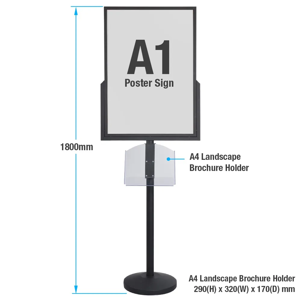 - Double sided sign stand holds A1 (841 x 594mm) graphics on each side!