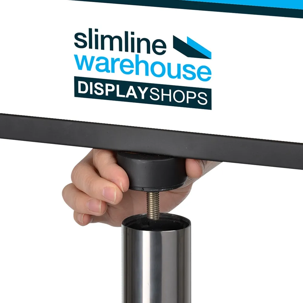 To ensure stability, the base holds most of the 16kg weight, and also has a rubber cover that prevents damage to floors whilst keeping the stand from slipping out of place. To protect posters from damage, there are (2) clear acrylic panels that prevent grime or dust from gathering on the poster. The simple slide-in design makes it easy to switch out posters without any tools necessary. Order today by 3pm AEST to receive same day despatch with most in stock products to anywhere in Australia, from Slimline Warehouse!