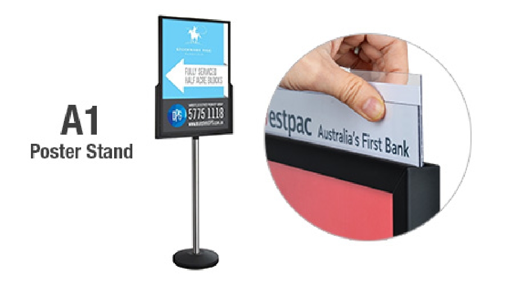 - Double sided sign holders hold A1 (841 x 594mm) posters in portrait orientation