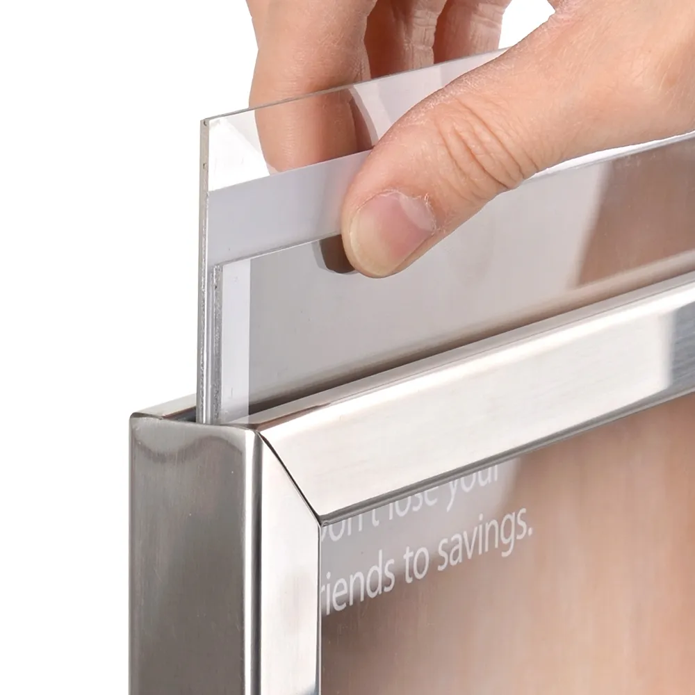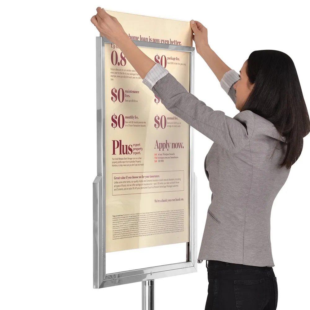 Made of steel, this poster frame display has use in heavily-trafficked areas in mind, able to hold up well to daily use in heavily trafficked locations. The top poster has a silver finish that is complemented by the chrome pole and base for a stylish look that works well with any décor. Assembly is quick and easy using simple tools, ready to go minutes after opening the box! Order today for same day Australia-wide shipping with this and most other products when purchased by 3pm AEST, only from Slimline Warehouse!