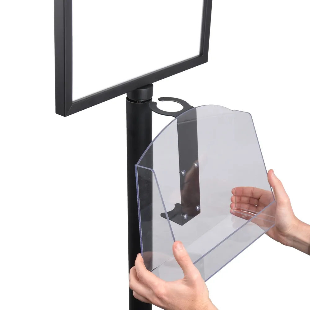 The floor poster stands, free standing sign frames have protective PET lenses on each side, helping to deter would-be vandals and keep your custom posters from getting grime or dust directly on them. Beneath the poster frame is an adjustable acrylic pocket, perfect for placing take away marketing materials. The clear front lip keeps brochures in place, and the pocket is designed to hold A4 (210 x 297mm) literature in landscape orientation or DL (99 x 210mm) brochures, with two of this size able to fit!