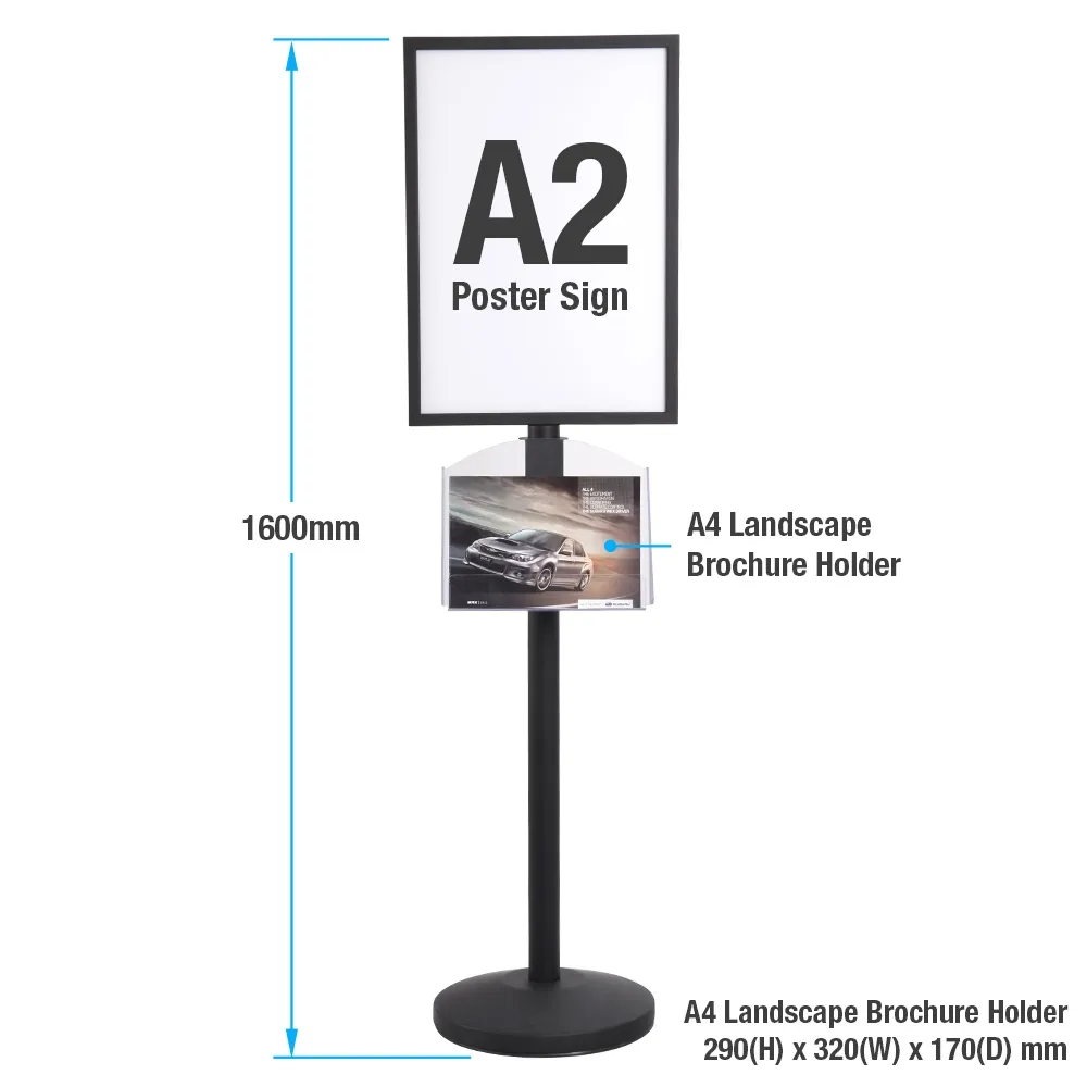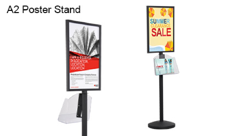- Dual-sided display holds A2 (594 x 420mm) posters on each side