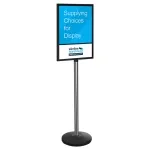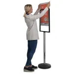 - Floor standing sign holders use slide-in design for quick, tool free poster changes