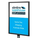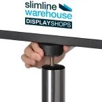 The stand is made from powder coated steel, ensuring long-lasting use in heavily-trafficked areas with little worry of breakdown. The frame and base are matte black to offer a stylish contrast to the shiny silver post that has an upscale look for all locations. The weighted base helps to provide stability to the stand, and there is also a rubber pad that helps to keep the display from slipping out of position as well as prevent damage to floors. The entire stands weighs only 13.5kg to be positioned with ease. Slimline Warehouse provides same day despatch to anywhere in Australia with most in stock products that are purchased by 3pm AEST!