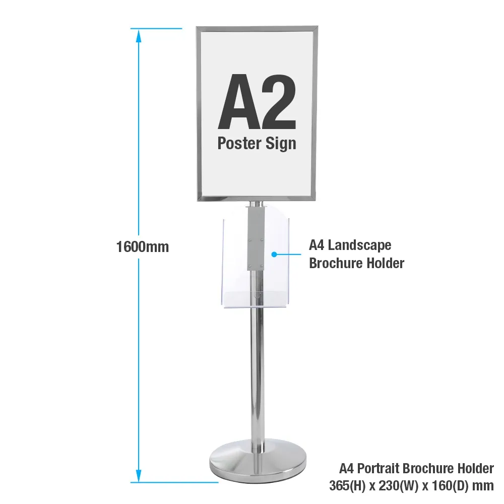 A2 Poster Stand with A4 Portrait Brochure Holder