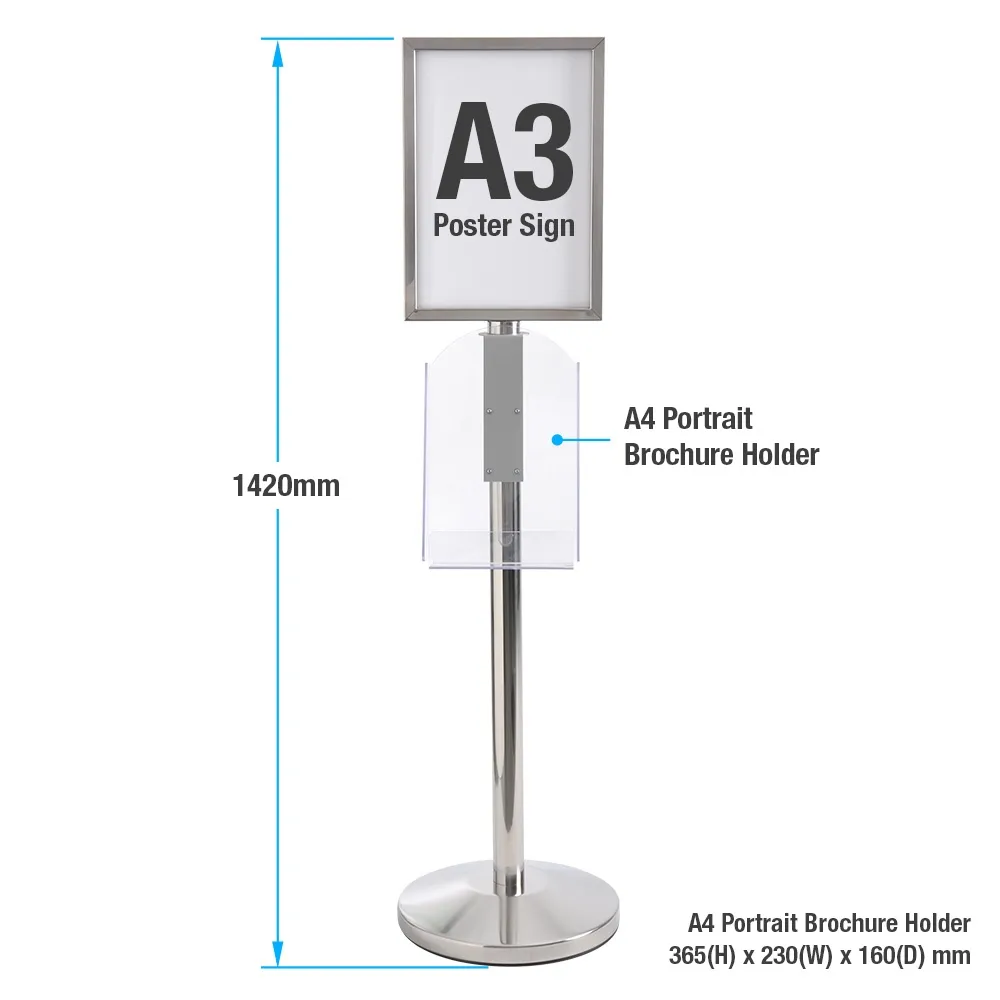 - A3 signage stand has clear acrylic pocket for A4 (210 x 297mm) brochures!