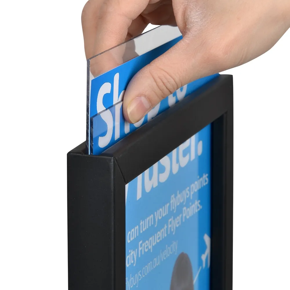 - Quickly change-out posters with no tools needed thanks to slide-in design