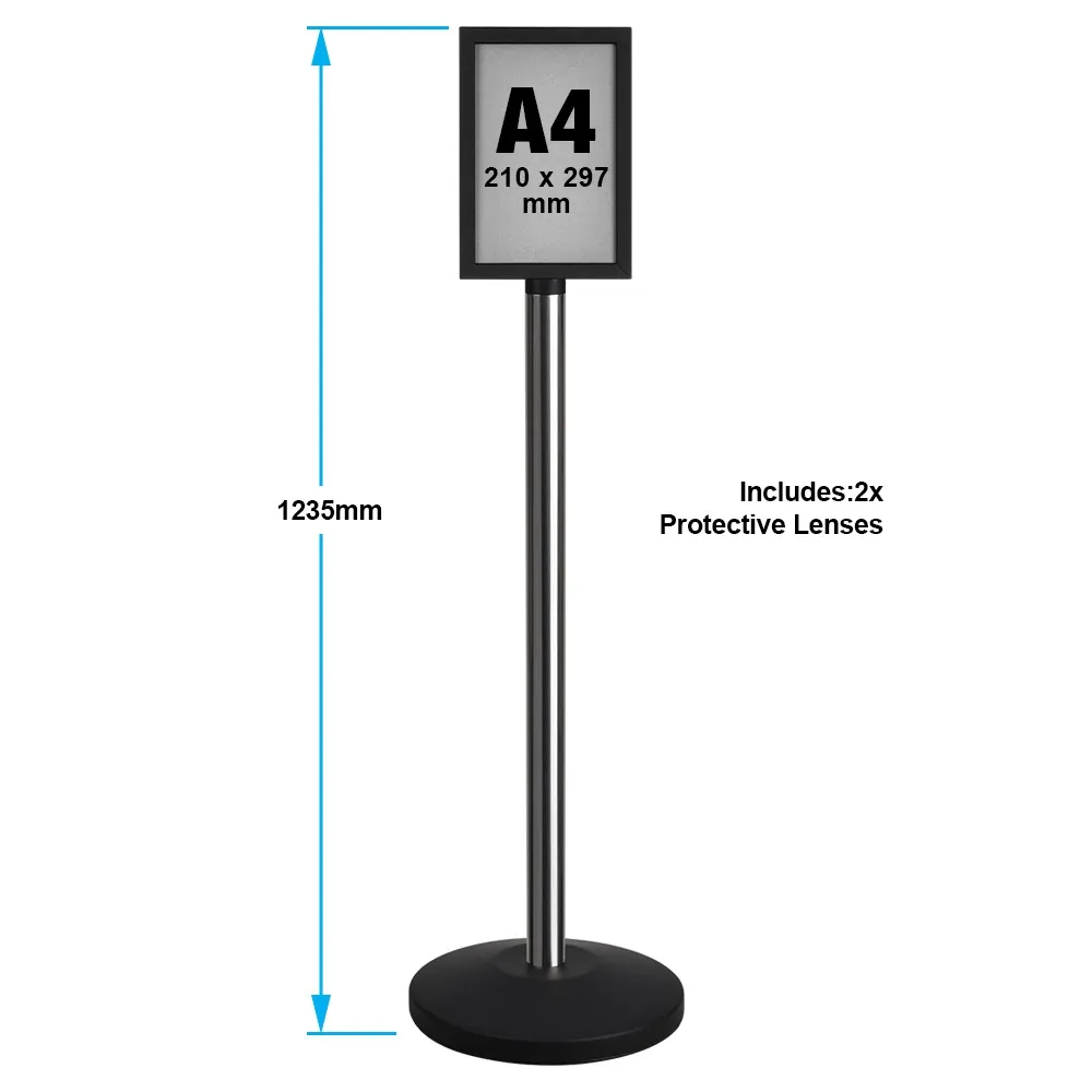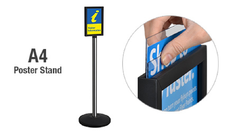 - Floor sign holders hold A4 (210 x 297mm) posters in portrait format in frame