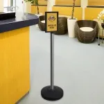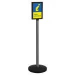 These floor sign holders are used for advertising and promotions in heaps of locations, including shopping centres, museums, retail stores, and hotels. The dual sided metal poster display helps to maximise floor space by featuring a single footprint whilst offering viewing in multiple directions. The easily seen freestanding sign is 1235mm tall. The slide-in design of the poster holders makes it easy to switch out posters in seconds without any tools necessary.