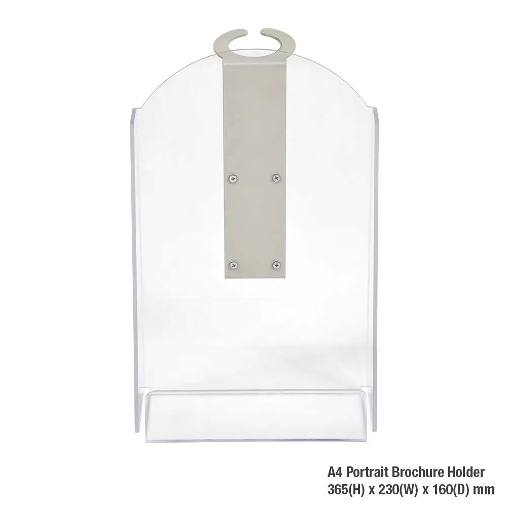 - Holds A4 flyers (297 x 210mm) in portrait or (2) DL (99 x 210mm) on stand