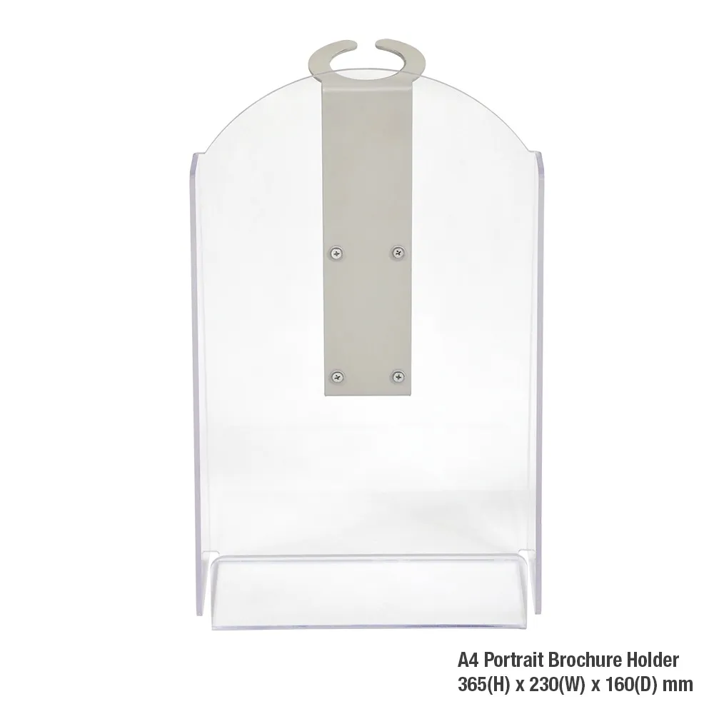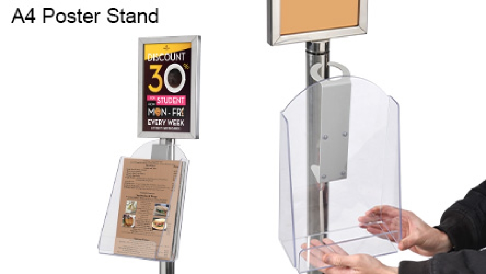- Clear acrylic pocket on front of stand hold A4 pamphlets to provide take away info