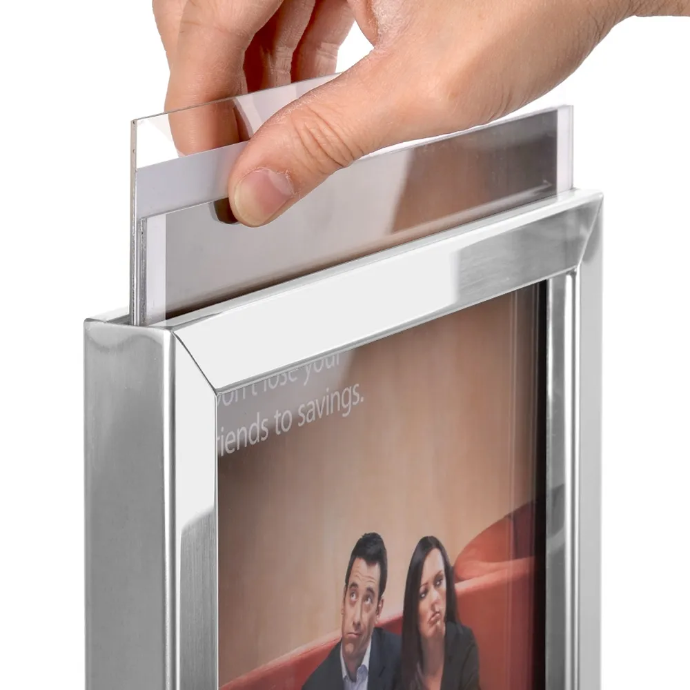 - Change-outs of posters are quick & easy without tools using slide-in design