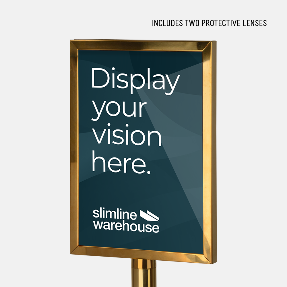 - Upscale gold finish on stainless steel frame provides affordable & durable display