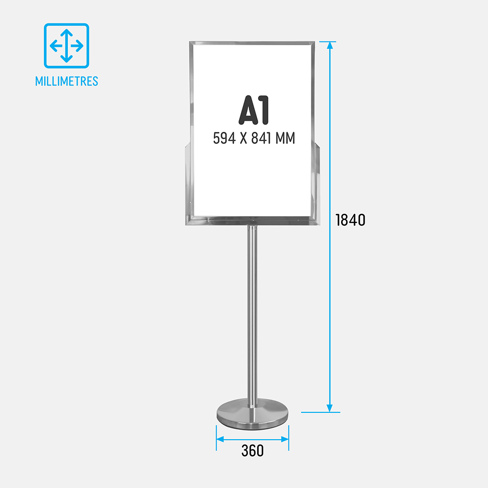 - Designed to hold A1 (594 x 841mm) posters in portrait format on each side