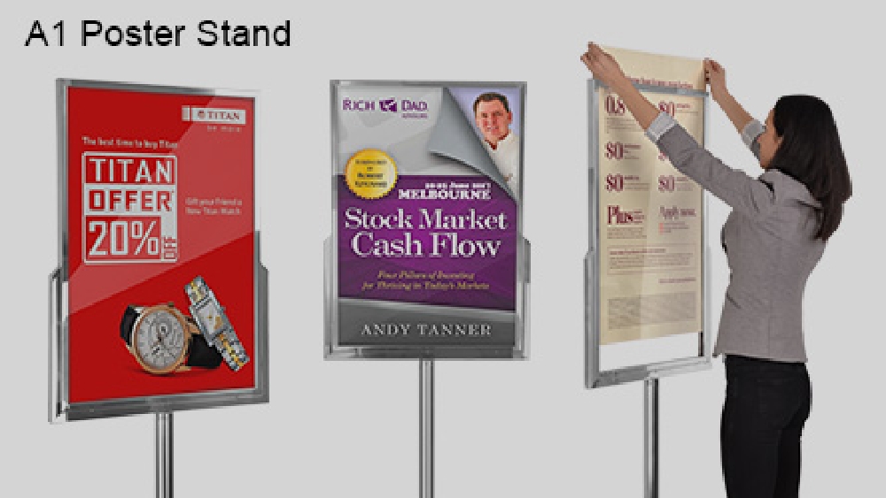 - Freestanding sign holder is dual-sided display to maximise outreach to visitorsl