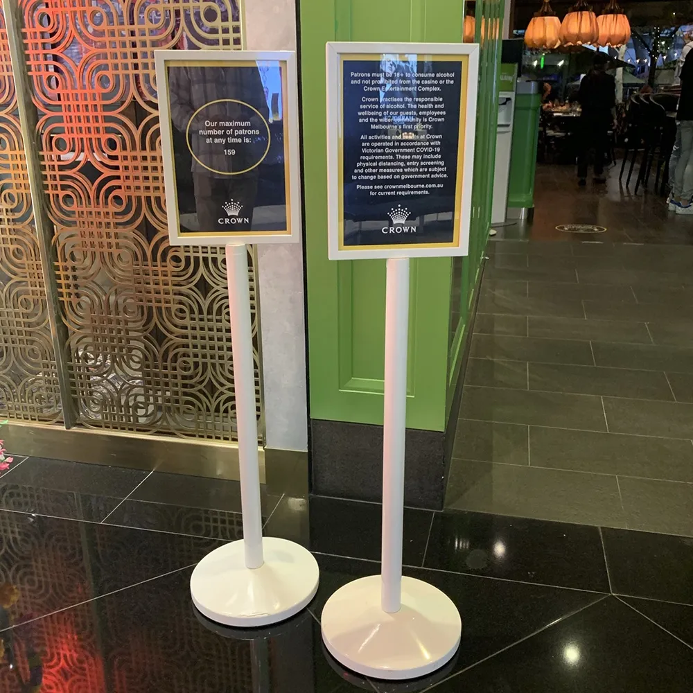 This metal poster holder, pedestal sign stand can have posters displayed on both sides to maximise your floor space! The small footprint of the display makes it easy for visitors and patrons to get around whilst still advertising upcoming events, product promotions, and more in multiple directions at once. The stand is 1420mm tall as well to easily be seen no matter where it is placed.