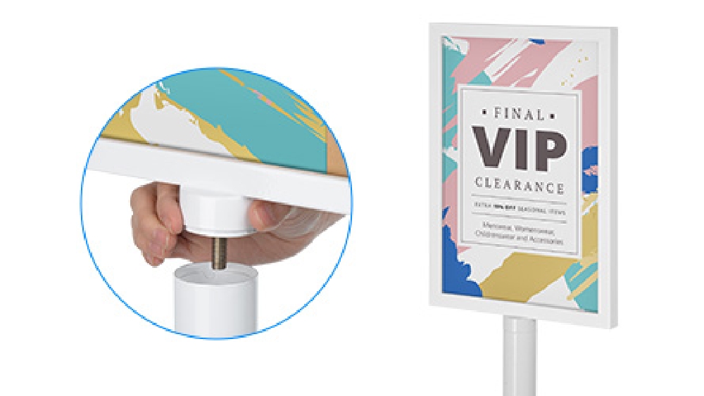 - Slide-in display makes it easy to switch out posters without using any additional tools