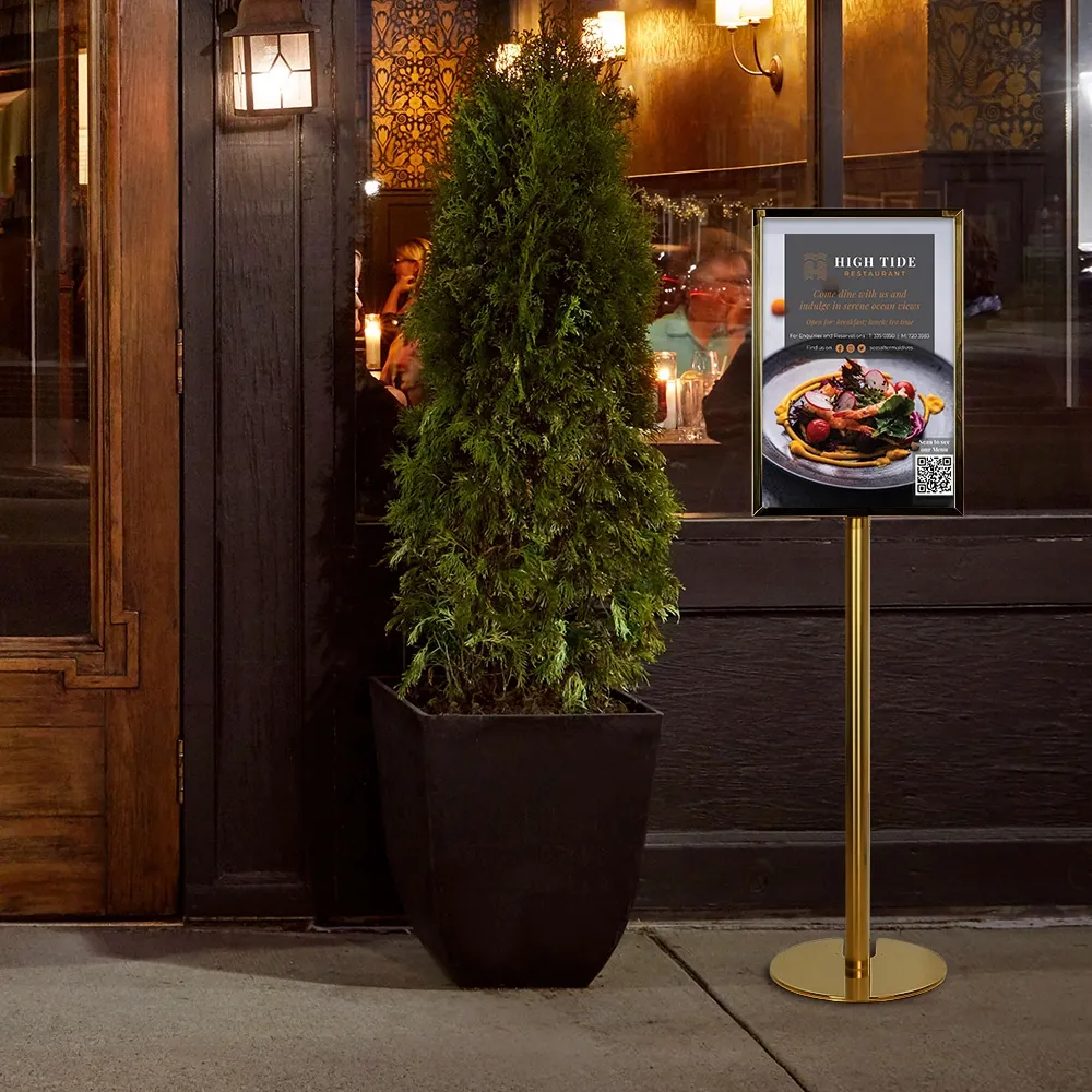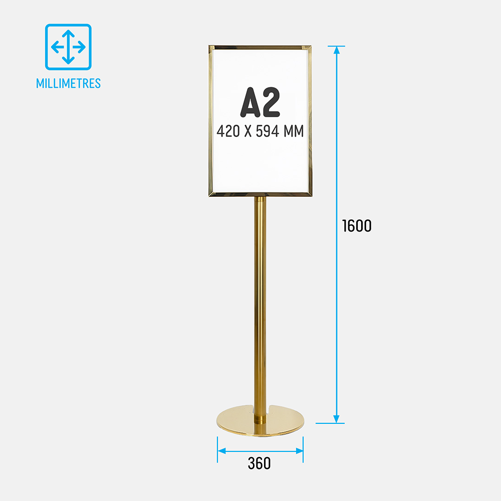 - Frame holds A2 (594 x 420mm) portrait graphics for clear messaging