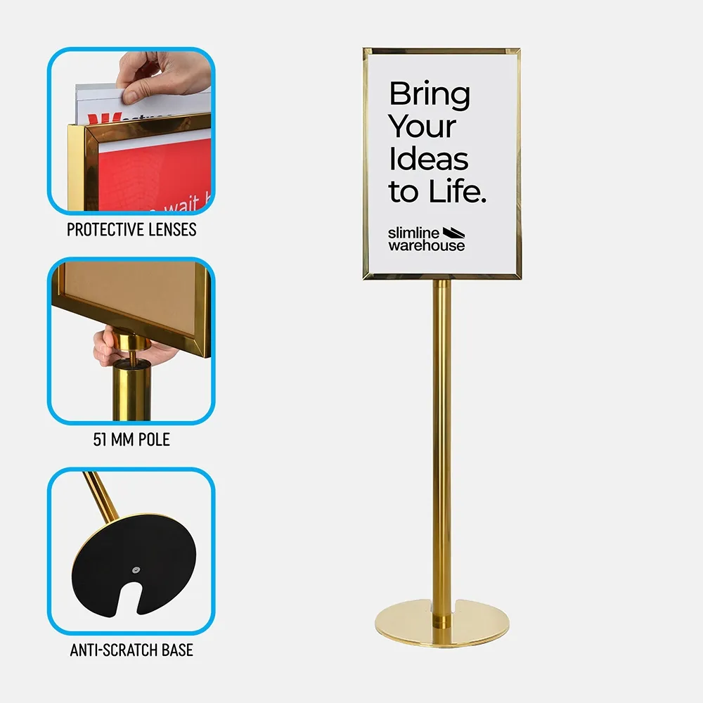 These displays are finished in bright gold, offering a sleek and professional aesthetic that enhances any displayed content. At 11.2kg, they are lightweight enough for easy positioning while remaining sturdy for long-term use. Ideal for promotional signage, directional displays, or branded messaging, this stand is a valuable addition to any business. Slimline Warehouse provides fast shipping across Australia—order today to upgrade your advertising displays!