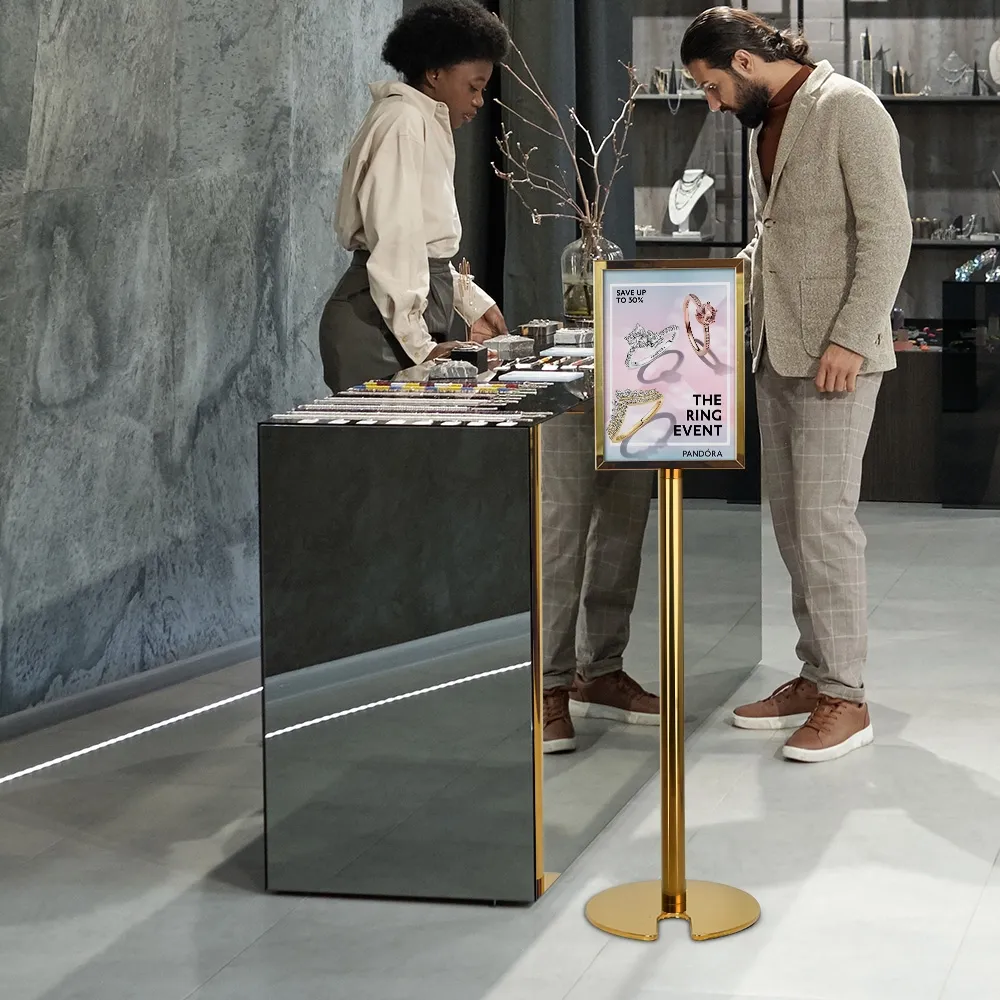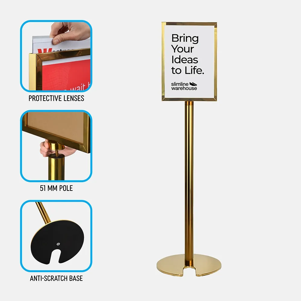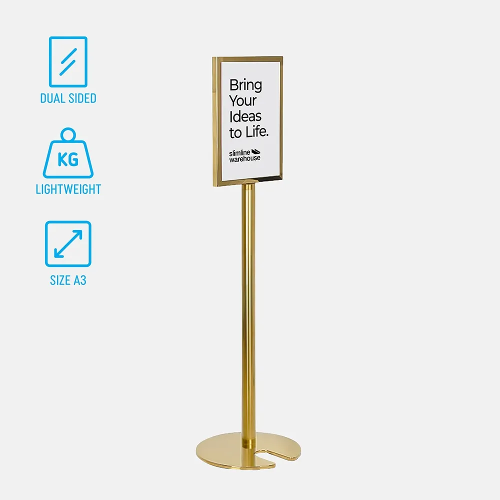 With a bright gold finish, this display offers a premium look suitable for upscale retail environments and corporate spaces. Weighing 8.7kg, it is stable yet easy to relocate when necessary. Whether used to showcase promotions, event schedules, or informational signage, this display enhances any business setting. Slimline Warehouse provides fast shipping across Australia, so order today to add a professional touch to your signage!