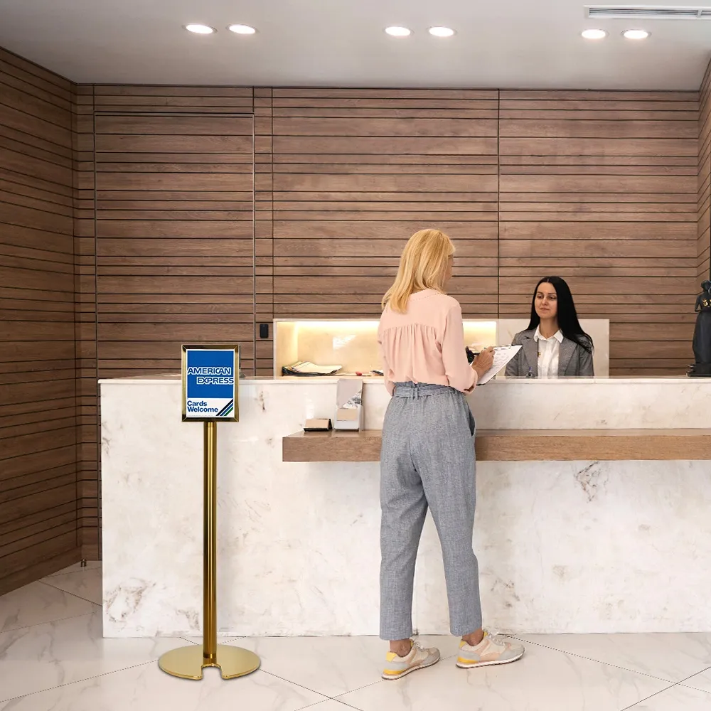 - A4 sign holder features a dual-sided display for professional presentations