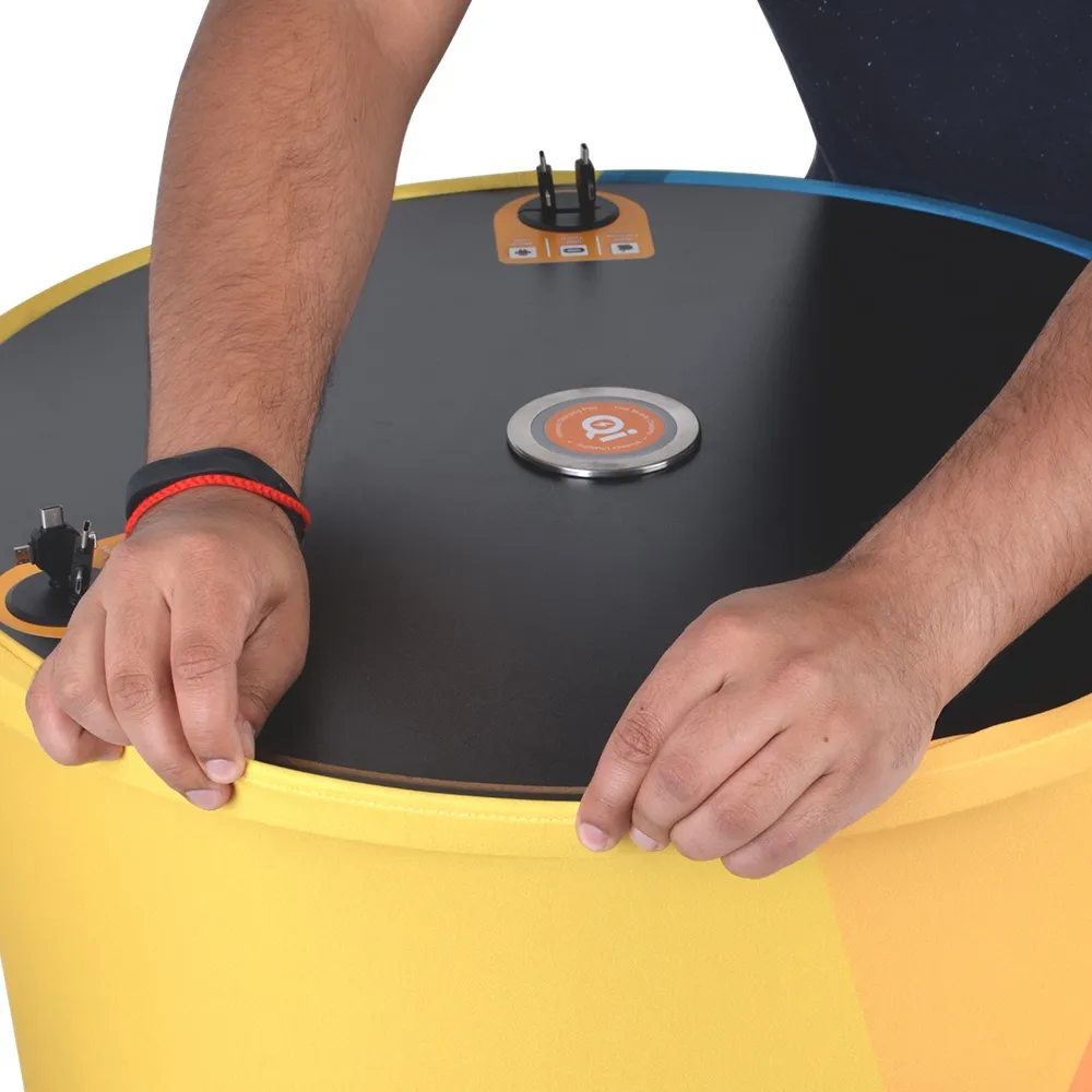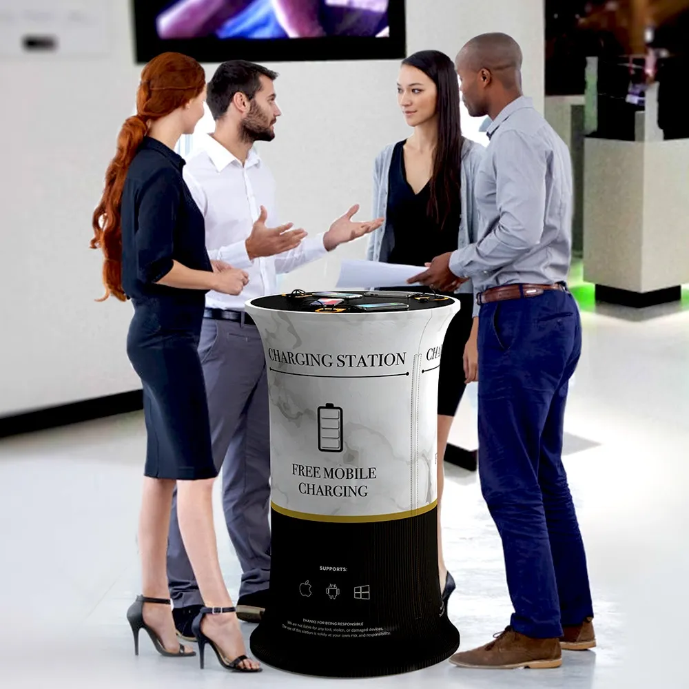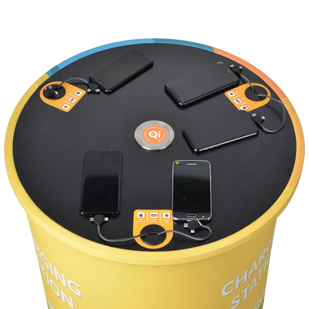The Branded Charging Station also has a Qi wireless charging pad in the middle to fast charge devices without having to plug anything in! The main benefit of this portable counter is the custom graphic fabric wrap that is included. Your custom designs are digitally printed in full colours, able to readily capture the attention of passersby to get them interested whilst proudly displaying your branding. Our in-house experts are at the ready for help with design questions, with a range of packages on offer now to help meet your exact needs.
