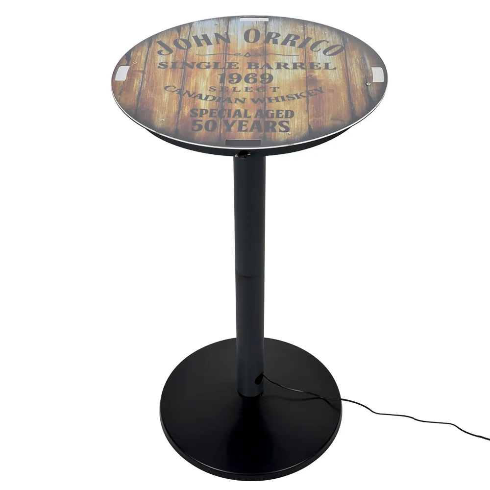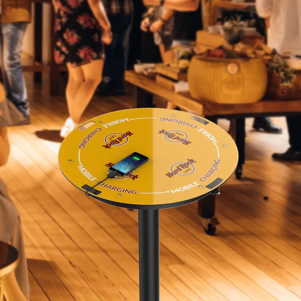 This device charging table recharges multiple phones, tablets, and more at once with a variety of connectors available to work with different brands of devices! The tabletop features (4) total cables that each have a 3-in-1 connector with Lightning, USB-C, and micro USB ends for use with both Android® and Apple® devices. The connectors are at the end of a retractable braided cable that is 200mm long to easily reach users whether at a bar, exhibition booth, retail store, or lounge. The 1085mm table has a 600mm diametre tabletop to offer heaps of space for recharging devices, placement of additional marketing displays, and general space for users at events.