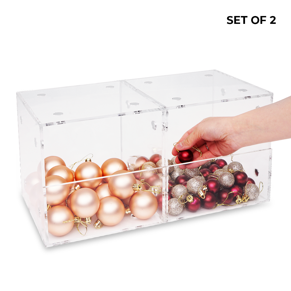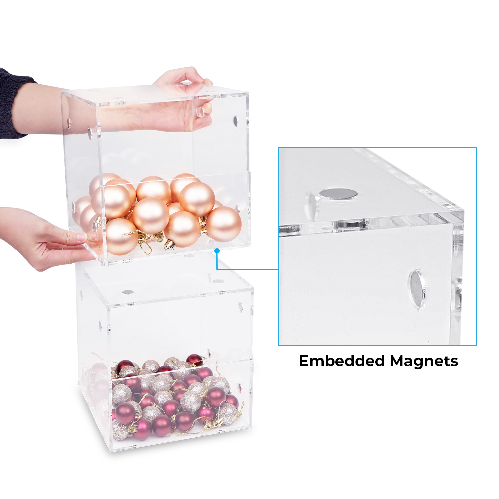 - Lucite display cubes have embedded magnets securely stack multiple boxes together