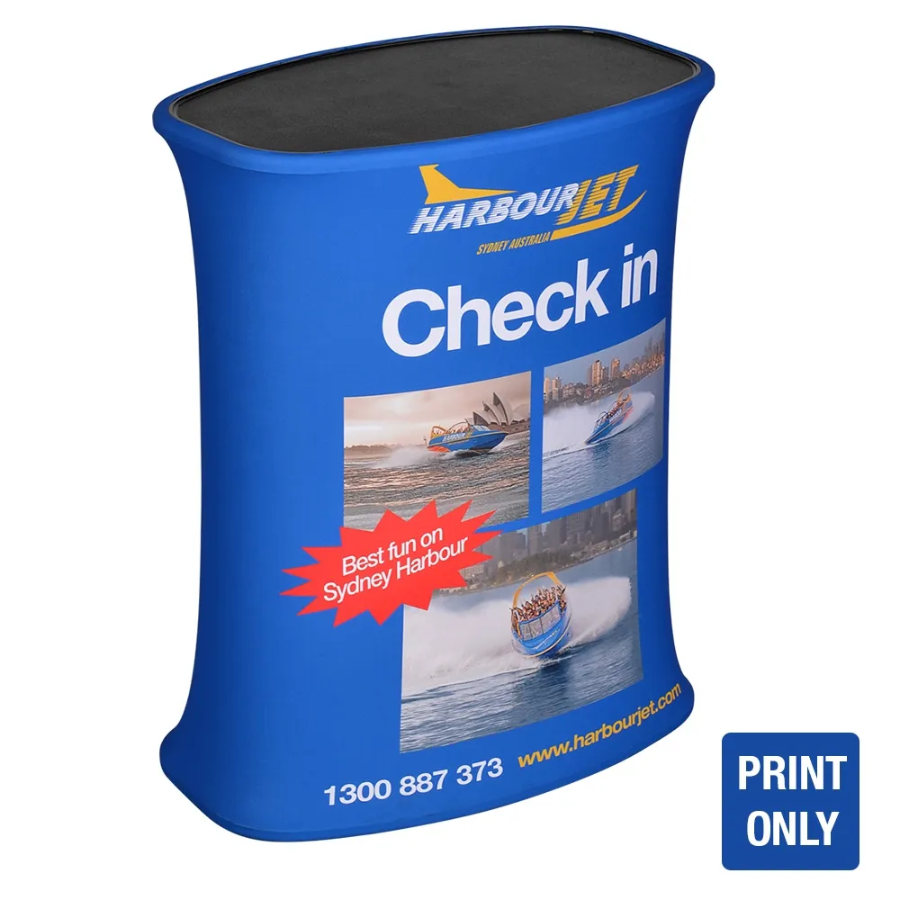 - Custom printed graphic is replacement for KHCNT26EA pop up trade show counter