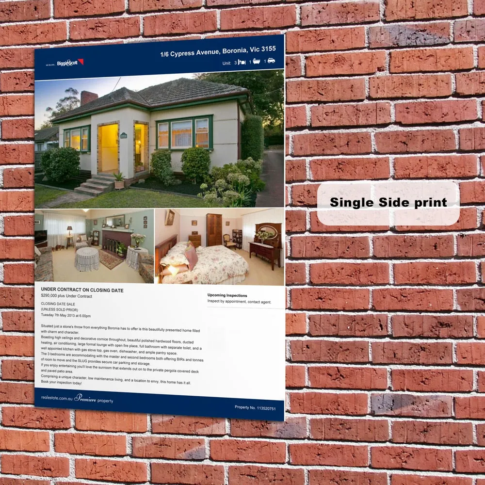 These promotional signs also have optional plastic eyelets available. These eyelets allow you to attach the sign to a fence or other such structure with fishing line, chains or plastic ties. The temporary plastic sign is used without eyelets as well, and can be displayed using an A board, floor stand, sign stake, and other options! The posters today for you to order for your next event or business. Our wide range of different options as well as sizes of 5mm corflute signage ensure your company can choose the proper weatherproof sign for your needs today! Order online today with delivery all across Australia!