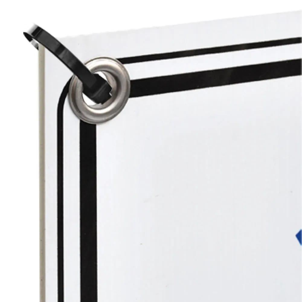 The plastic sign, also known as temporary signage and fence signs, have optional metal eyelets available as well. These eyelets allow you to affix the signs to a fence, pole, or other similar area using plastic ties, chains, or fishing lines. The signs can be used without eyelets by placing on a floor stand or sign stakes.