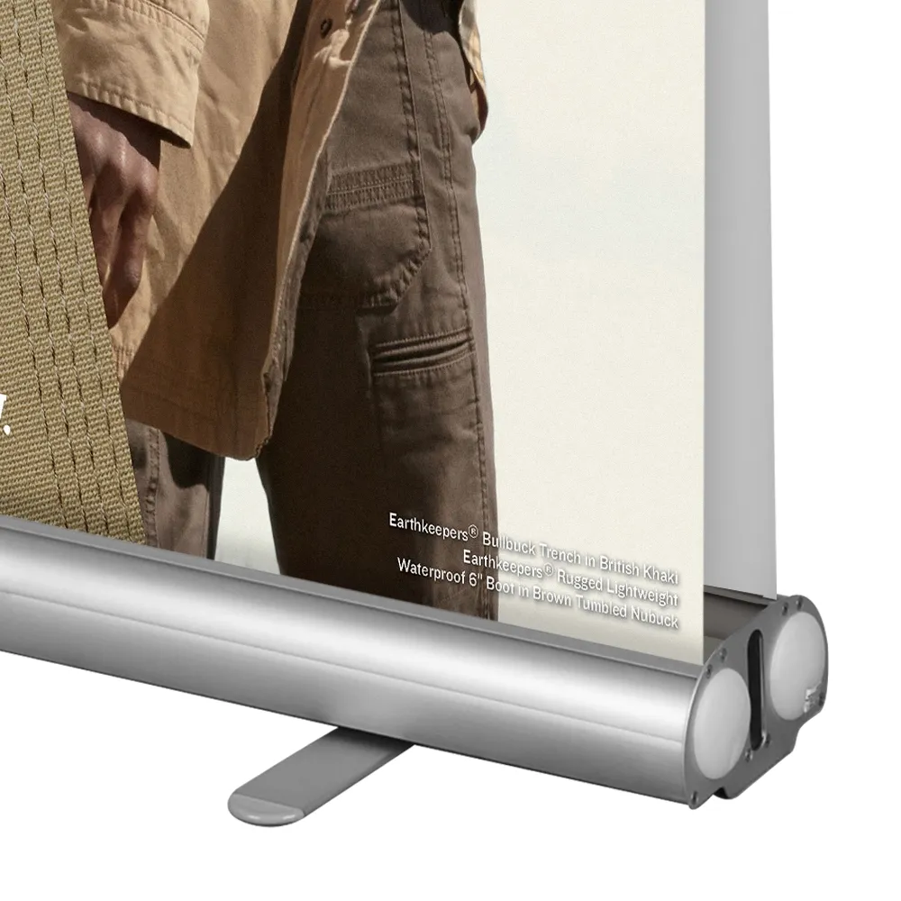The retractable PVC banner, much like custom graphic stands and trade show pull up banners, are dual-sided displays, showing your designs to more people at once since it points in multiple directions. Set-up of the display requires no tools and can be done very quickly due to the telescoping pole! The PVC banner offers a strong display that holds up well to the rigors of use within different places, including shopping centres, retail stores, exhibition halls, and trade shows!