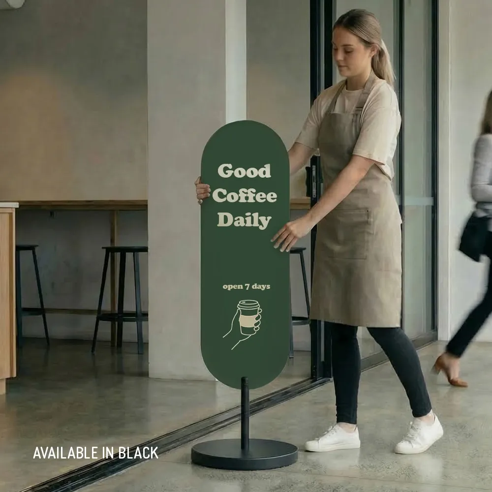 Curved Poster Stand solutions are built for clear direction and high-impact messaging in busy Australian environments. Ideal for retail, hospitality and public spaces, this freestanding sign delivers strong visibility without permanent installation. The curved face draws attention at entry points, helping guide customers, promote offers or support temporary wayfinding in high foot traffic areas.
